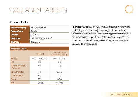 Product category: Food supplement Ingredients: collagen hydrolysate, coating (hydroxypro-