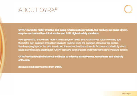 QYRA stands for highly effective anti-aging nutricosmetics products. Our products are result-driven,
